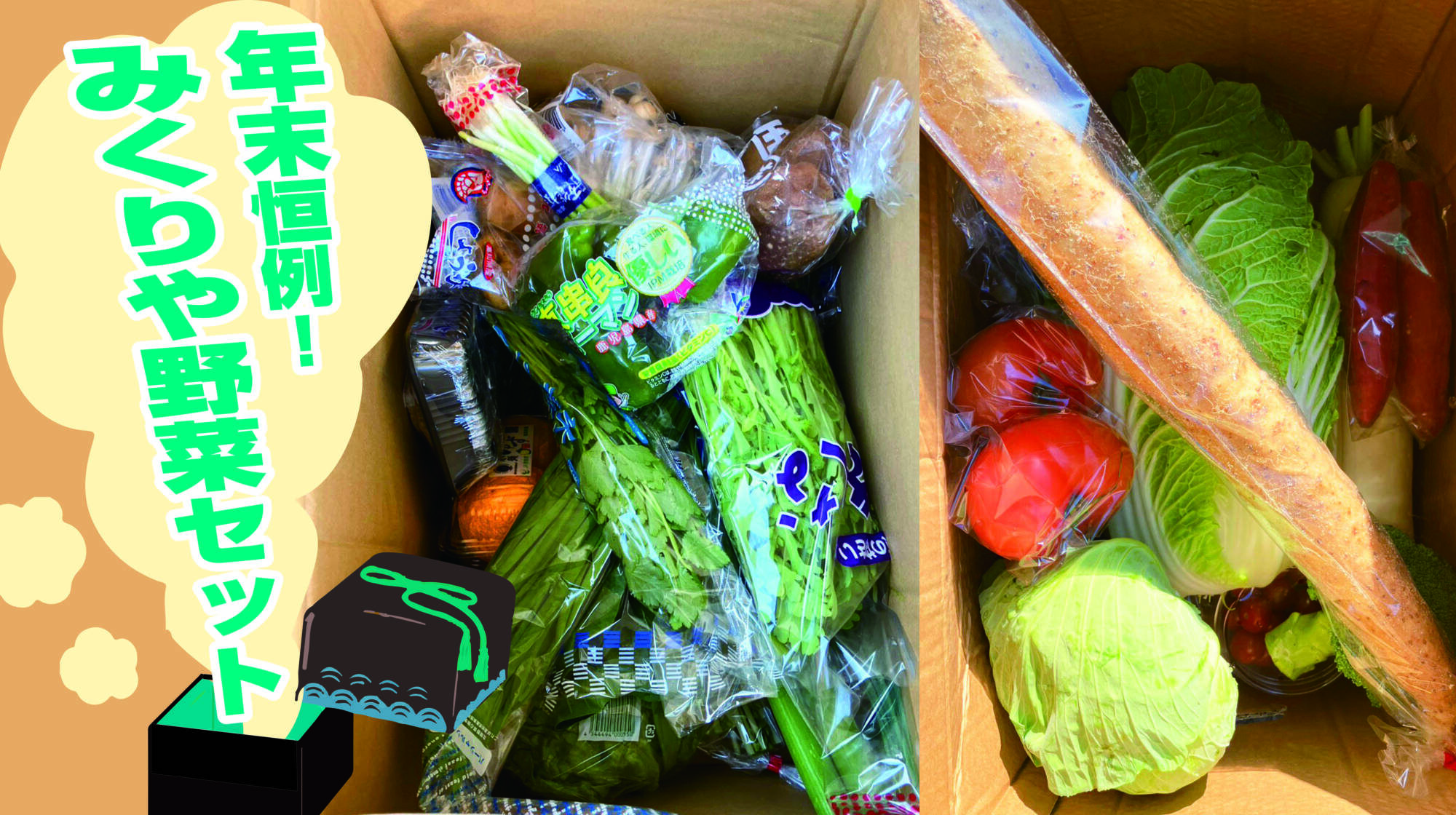 皆さん、こんにちは! みくりや青果では、毎年年末に「野菜セット(玉手箱)」を従業員の皆さんへお渡ししています。この取り組みは、「年末ぎりぎりまで仕事が続く中、買い物に行く時間も取れない社員に、せめて野菜を用意したい」とい […]