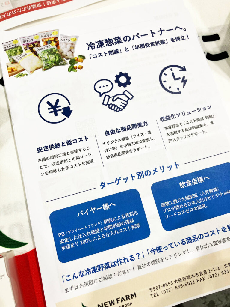 NF21では、冷凍食品のほかにキムチやカクテキも取り扱っており、現在は大手スーパー様で販売されています。