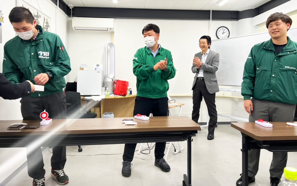 研修の締めくくりは、これまでの学びを振り返るグループ対抗クイズ大会。